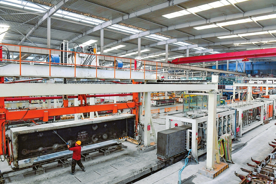 5月3日,在位于屯留经济技术开发区的山西住工建筑科技有限公司生产车间,工人在加紧生产订单产品。