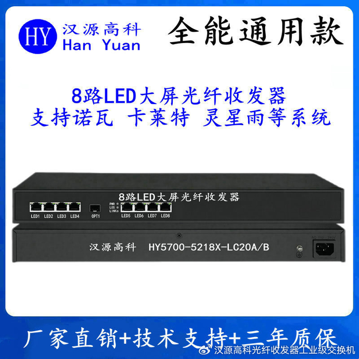 在LED显示屏应用中,传输设备的可靠性直接关系到系统的稳定运行。汉源高科全能通用款8路LED大屏光纤收发器HY5700-5218X-LC20A/B以其工业级的设计和卓越的可靠性,成为恶劣环境下的理想选择。