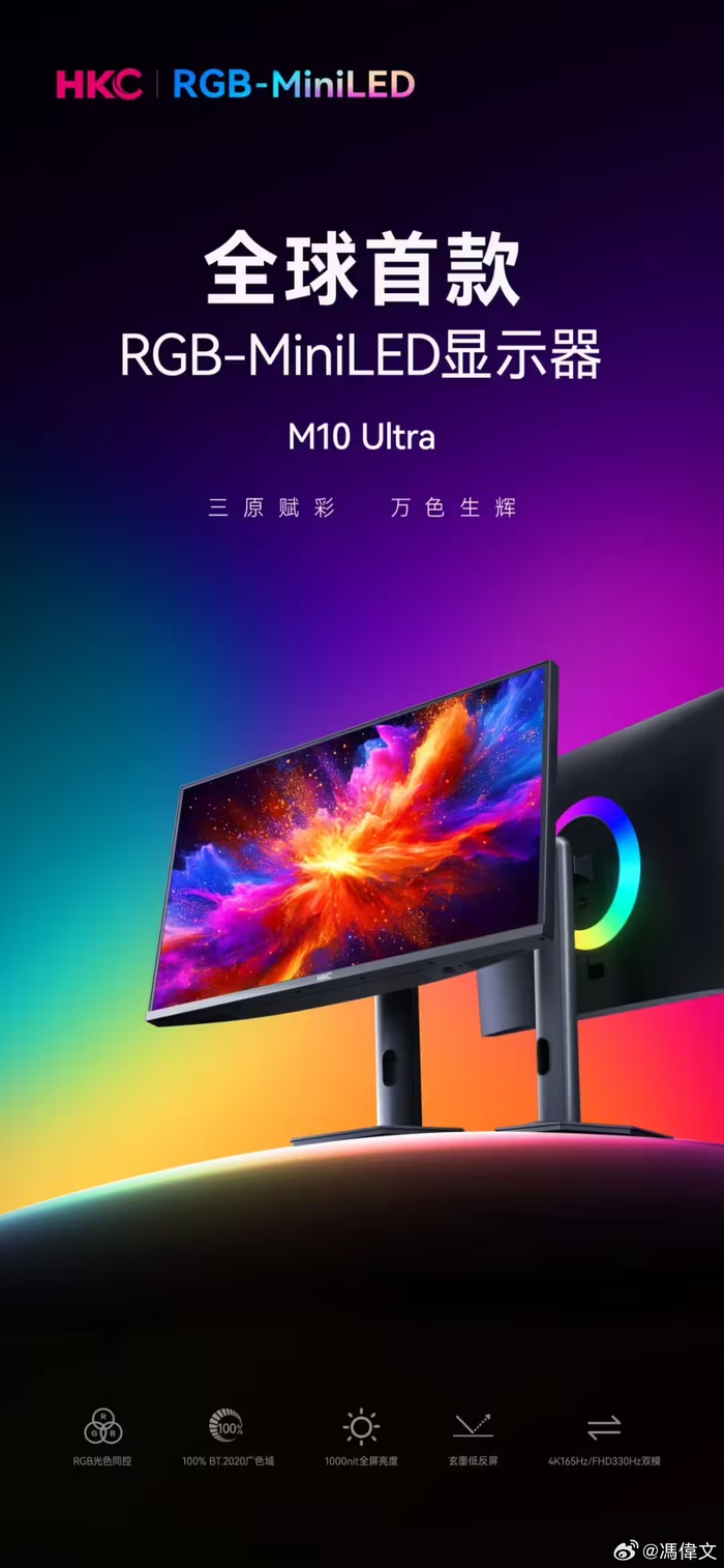 HKC M10 Ultra,号称全球首款 RGB Mini-LED 显示器