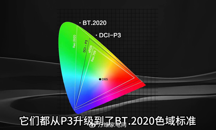 色彩表现上,SQD-Mini LED实现了行业级的画质突破。我们此前电视测试时常用的DCI-P3色域标准(影院级色彩标准)已无法满足其色彩呈现需求,现如今都用BT.2020色域标准(广色域标准,目前色彩覆盖最广的标准)进行测试。以TCL机皇X11L为例,其SQD-Mini LED技术可实现100% BT.2020全局高色域覆盖,其显色更纯净、更稳定,无论显示单色还是复杂多色画面,都能保持一致的高色域表现。