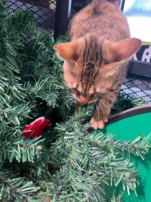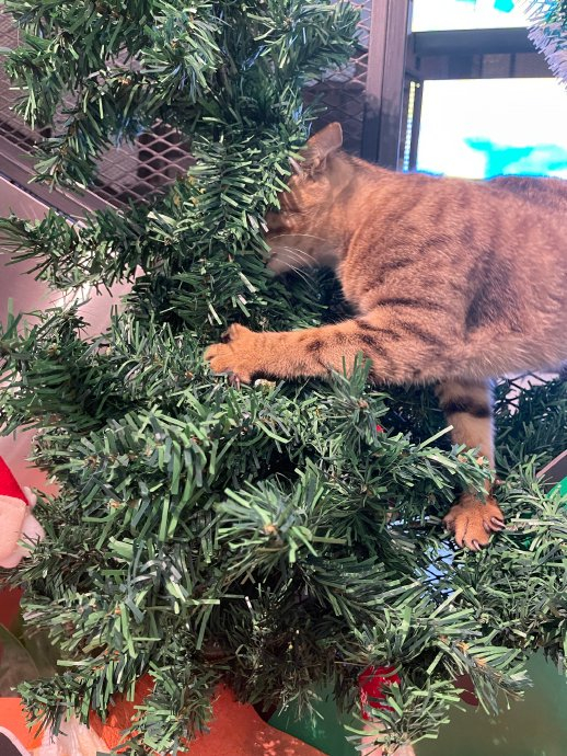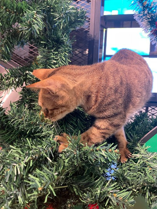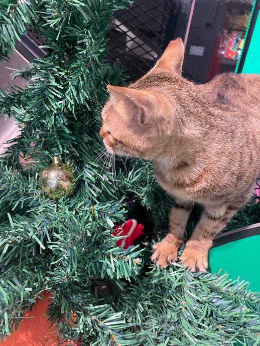 LED板上的、圣诞树上的、吧台上的猫咪和一只狡猾的嘿咻